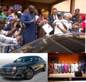 The Mercedes Benz S580 was presented to the Monarch during the Praise and Prayer programme held at the Oba Ademuwagun Hall to mark the exact day the Deji made a triumphant entry into the palace about 10 years ago.