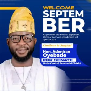 This September, as new beginnings unfold, let us walk with purpose and stand in unity. Support Hon. Adeniran Oyebade for Senate, Ondo Central Senatorial District—a choice for progress, a voice for the people.